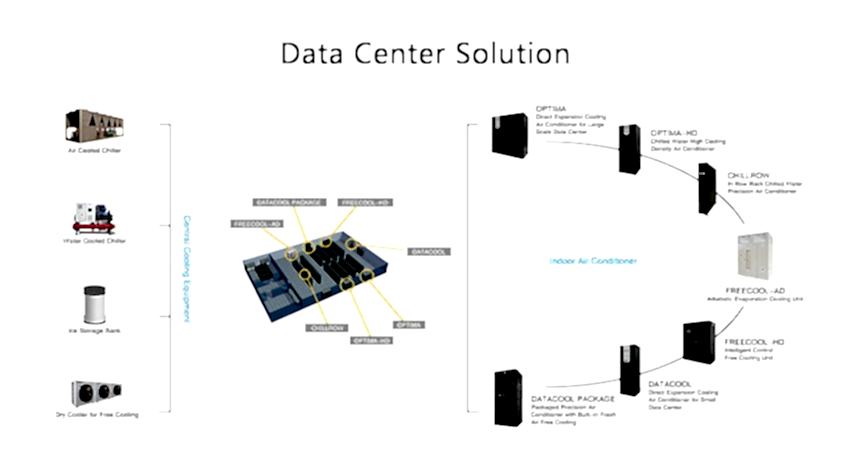 Sıralı, raflı ve adyabatik soğutma çözümleri dahil olmak üzere geniş bir bilgisayar odası klimaları portföyü.